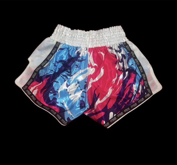 Elasticated waist band with draw string fasten. High quality material with sublimation print and embroidered logo. Size Chart (XXS to XXL) XXS – 35kg and under XS – 35-50kg S – 50-65kg M – 65-75kg L – 75-85kg XL – 85-100kg XXL = 110kg plus